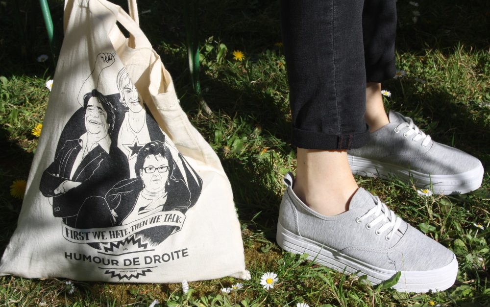 Qui dit soleil dit changement de sac, oui j’aime bien en fonction du temps adapter mon sac à main (c’est surtout que j’en ai beaucoup et qu’il me faut une excuse pour tous les mettre) et quand il fait beau, j’opte pour de la toile ! Retrouvailles avec mon tote bag Humour De Droite de l’été dernier qui reste mon préféré ! Vous pouvez le trouver ici.
